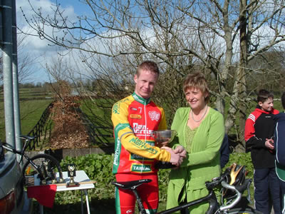 On to the senior events and here Martin made it a double for the O’Loughlin family by following his son Michael to the top step of the podium in the combined Junior, Veteran and third category senior event. Resplendent in his national veteran champion’s jersey, Martin gave another awesome display of power by crushing the opposition in this 52 mile event and coming home alone to secure his fourth victory of the season. On his current form he could be a serious challenger for the main senior events each week, but prefers to pick and choose his forays into the open races. Incidentally, Martin has been appointed as a selector for Ireland’s cycling representatives to the Beijing Olympics, so we might be seeing him in more of the open senior races in order to check out the form of the top riders from inside the bunch!